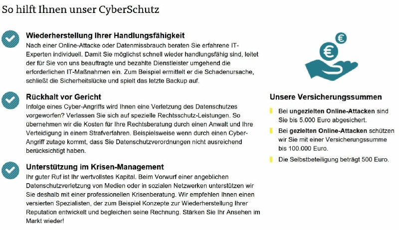 Sogar branchenspezifische Lösungen mittels IT-Partner und Versicherungsschutzbrief für den finanziellen Schaden.